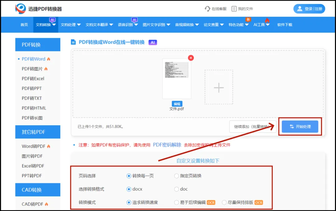 操作步骤(以PDF转Word为例):