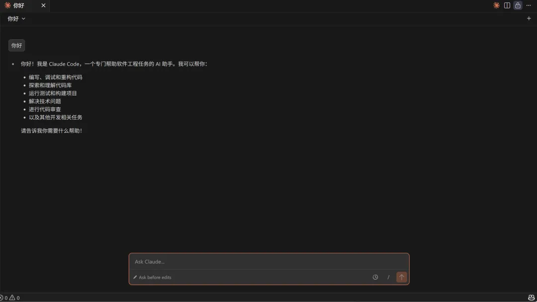 安装完毕后,VS Code 界面右上角会出现一个 Claude 图标,点击该图标即可启动 Claude Code 终端。