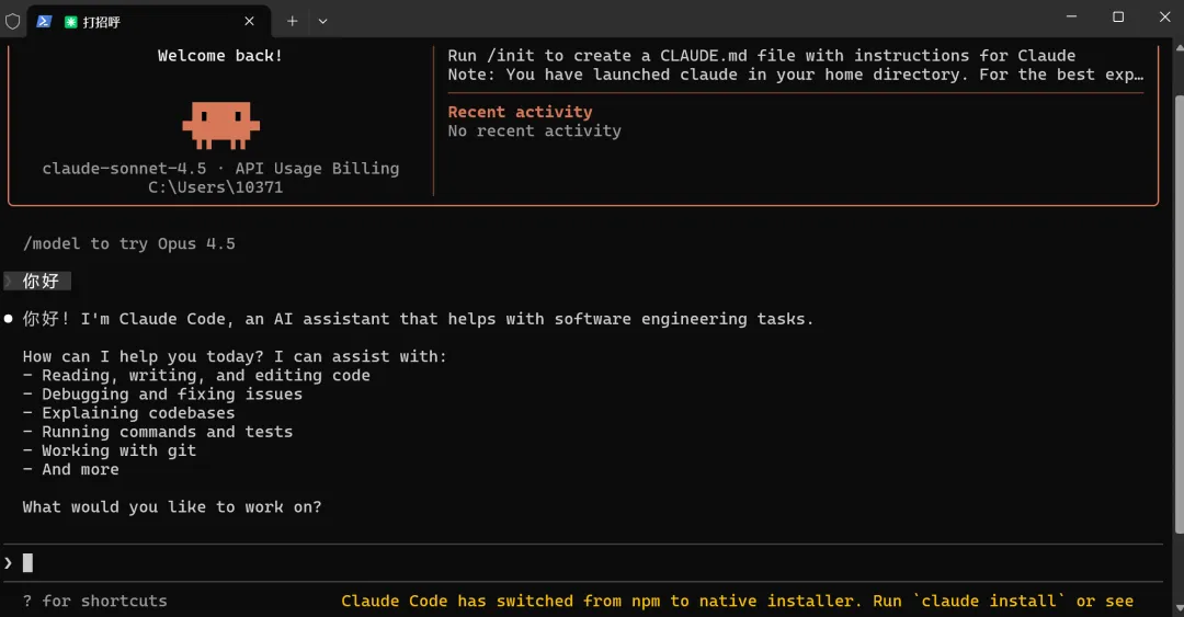 如果你之前是通过 npm 安装的,可以使用官方提供的命令升级到最新原生版本。