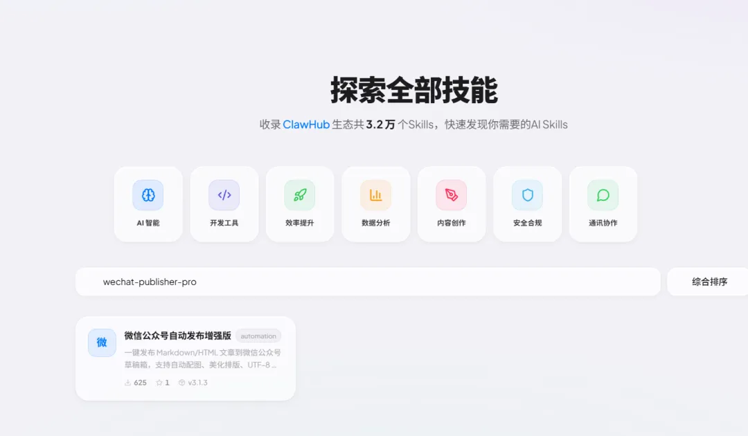 使用腾讯skillshub,搜索wechat-publisher-pro ,安装技能 skillhub
