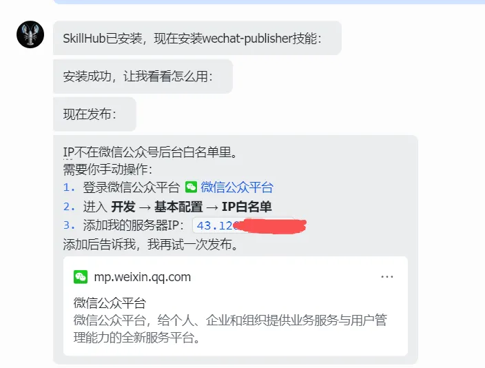 获取AppID、APPSecret 配置服务器白名单 安装公众号skills 龙虾安装和测试