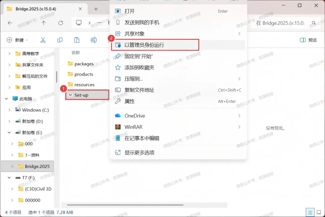 5.鼠标左键选中[Set-up],再右键选择[以管理员身份运行]