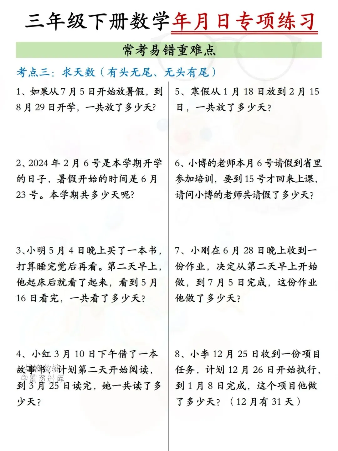 今天给大家分享的是【年月日专项练习】