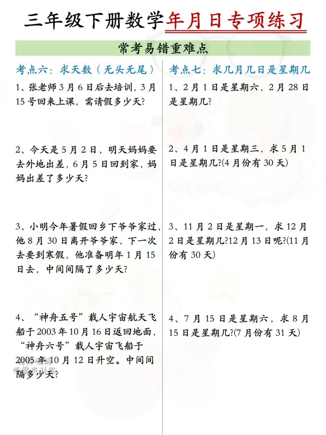 【年月日专项练习】把五大易错考点单独拎出来练,基础题+思维提升,由易到难,不同基础的孩子都能用👏