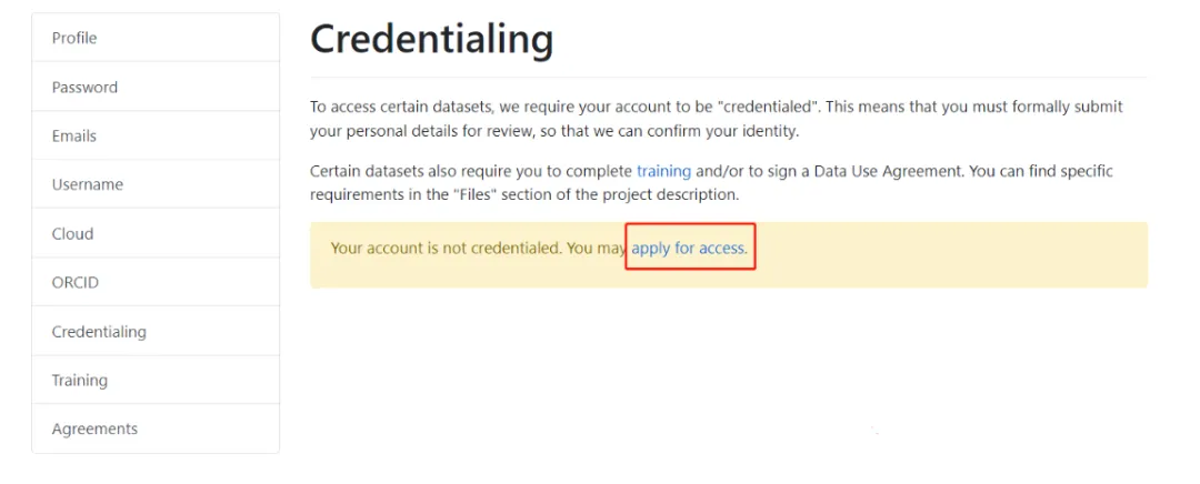 权限申请网站:https://physionet.org/settings/credentialing/