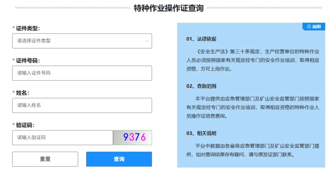 2、选择 特种作业操作证查询