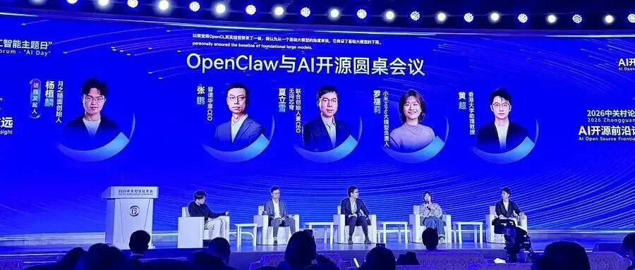 这场名为《OpenClaw 与 AI 开源圆桌会议》的五人谈话,由月之暗面创始人杨植麟全程主持,汇聚了中国 AI 产业最核心赛道的一线掌舵人:智谱华章创始人张鹏、无问芯穹创始人夏立雪、小米 MiMo 大模型负责人罗福莉,以及香港大学助理教授、Nanobot 团队负责人黄超