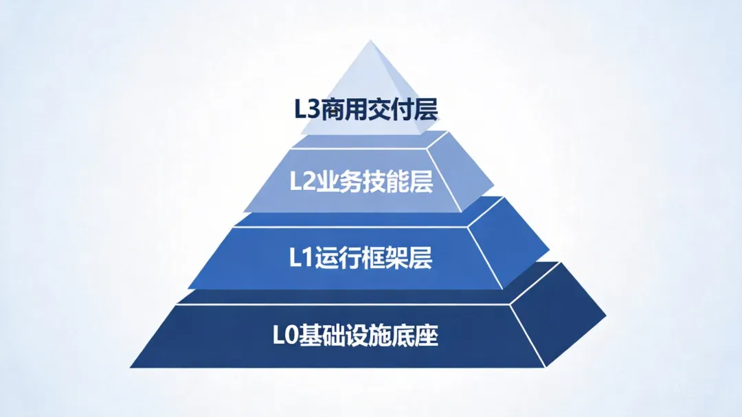 最顶层才是商用交付层(L3),即开箱即用的应用入口。企业最终为能跑在具体业务里的价值买单。