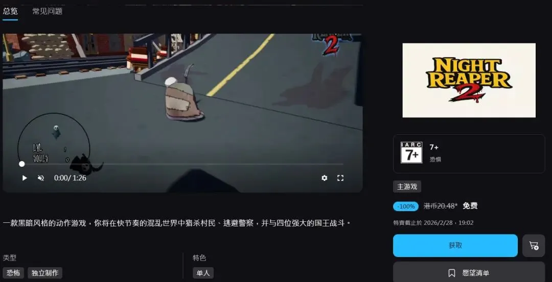 需要留意的是,此次免费领取并非Epic平台的常规“喜加一”促销,而是由开发者主动发起的特别活动。玩家只需在2月28日前登录个人Epic账户并进行领取操作,即可将游戏永久添加至账户库中。