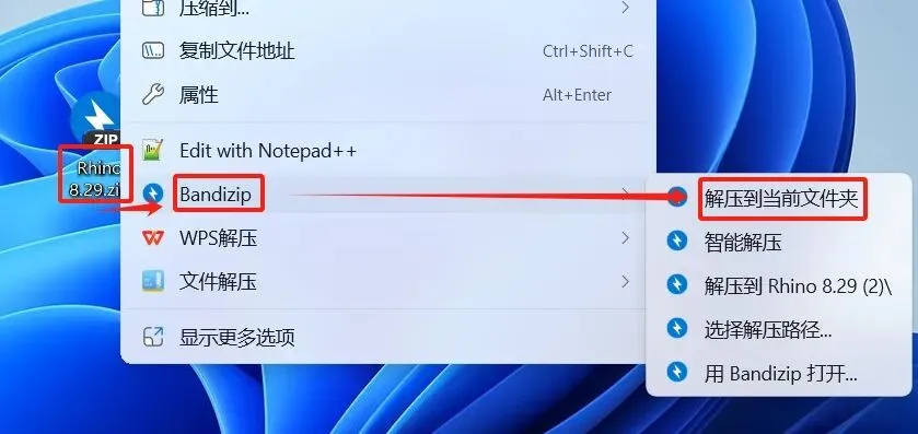 1.右击下载后的压缩包,选择【解压到当前文件夹】。