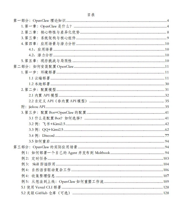 实际应用:展示了OpenClaw的多种落地场景,旨在激发用户的想象力与实践。