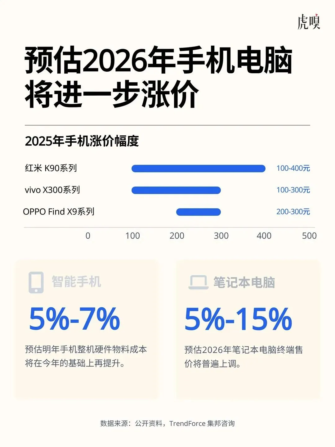 中端跟进:OPPO、vivo/iQOO 已发布公告,自 3 月中旬起上调部分机型建议零售价。一加中国区总裁李杰更是直言,内存成本累计涨幅超 400%,“后面的产品,只会越来越贵”。