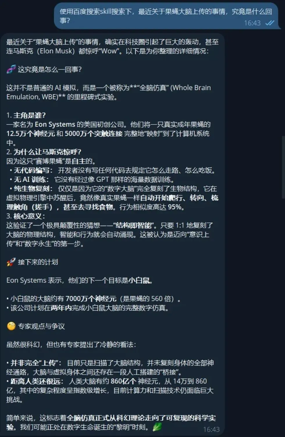 但百度搜索Skill就不一样,毕竟深耕中文场景这么多年,完全懂咱们普通人的搜索习惯,找东西又快又准,彻底跟“无效搜索”说拜拜。