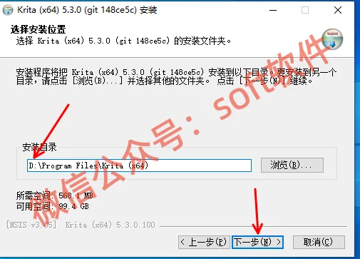 6,更改安装路径,建议直接将路径首字母C改为D或者EF等磁盘盘符。然后点下一步