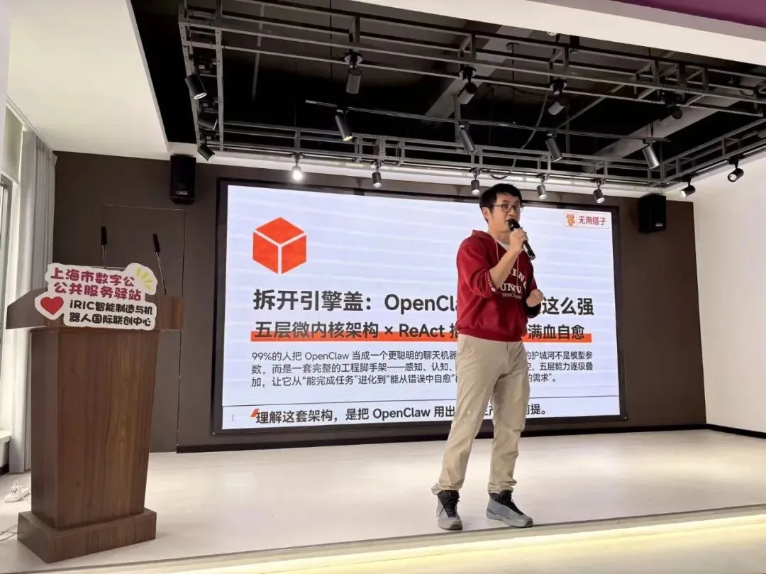 上海元恒信息技术有限公司、“知行机器人”调度系统作者、“Openflick”AI视频生成工具 作者、OpenClaw小红书/抖音skill课程讲师孙亦山带来《OpenClaw 企业智能体实战课:从能力认知到业务落地》专题分享。孙亦山指出,OpenClaw的独特之处在于为大模型“接上了手和眼睛”,它不再是锁在黑屋子里的“超级大脑”,而是潜伏于系统底层、具备实际操作能力的数字实体。当任务执行遭遇报错时,系统可自主读取日志、修改代码,实现跌倒后的自我修复。他指出这套逻辑也同样适配于机器人的自主作业环节中。他强调,OpenClaw的真正价值不在于技术参数本身,而在于开发者能否将其对准真实的商业痛点。