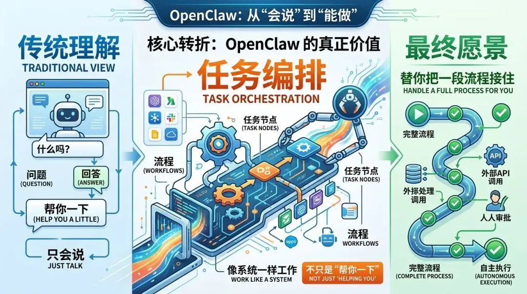 OpenClaw 真正有价值的地方,不是回答问题,而是编排任务。