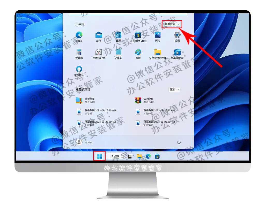 10.点击【开始菜单栏】然后点击【所有程序】