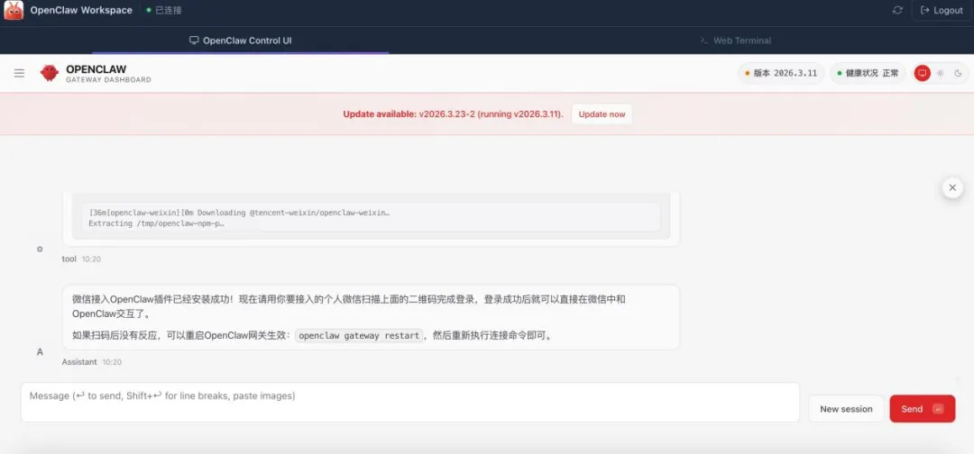 区别于普通纯聊天机器人的单一交互形式,「云端龙虾」同时配置两大操作入口:日常需求可直接在聊天框自然沟通,说一句“整理上午会议要点”即可快速拿到结果;需要深度操作时打开Web Terminal,可直接执行脚本、调用系统命令、批量处理文件,无需来回切换工具。每一次交互都在加深它对你的理解,从最初的指令式响应,到想你所想。