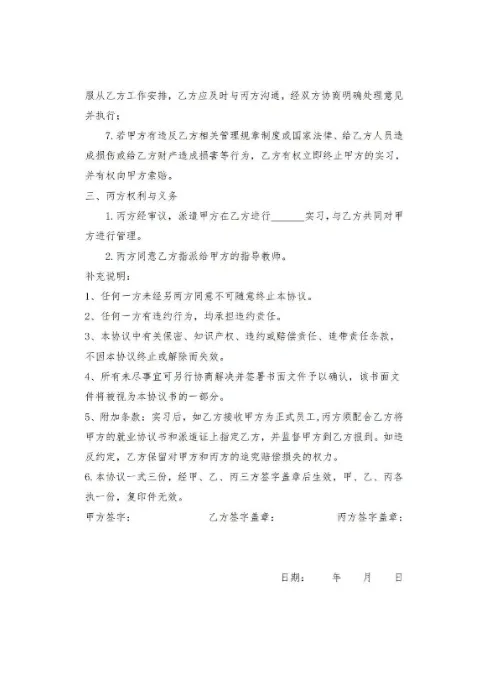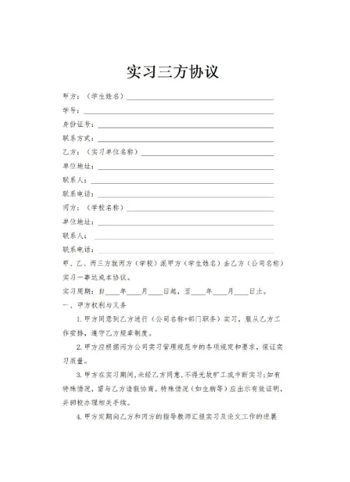 【2026】实习三方协议模板(word电子版下载)【免费分享】本文分享:实习三方协议模板合集下载后办公软件可直接编辑修改打印网盘打包下载链接👇https://pan.quark.cn/s/76abd8877917#实习证明模板doc #实习协议合同模板以下是部分预览图下载以上仅为部分预览图点击阅读原文,可直接下载