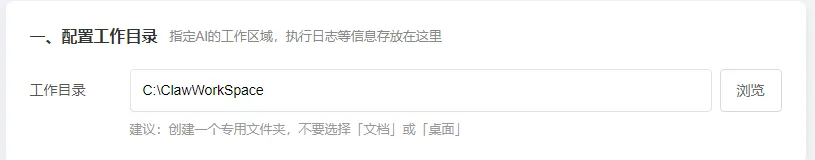 2、配置工作目录,建议创建一个专用文件夹,执行日志等信息会存放在这里。