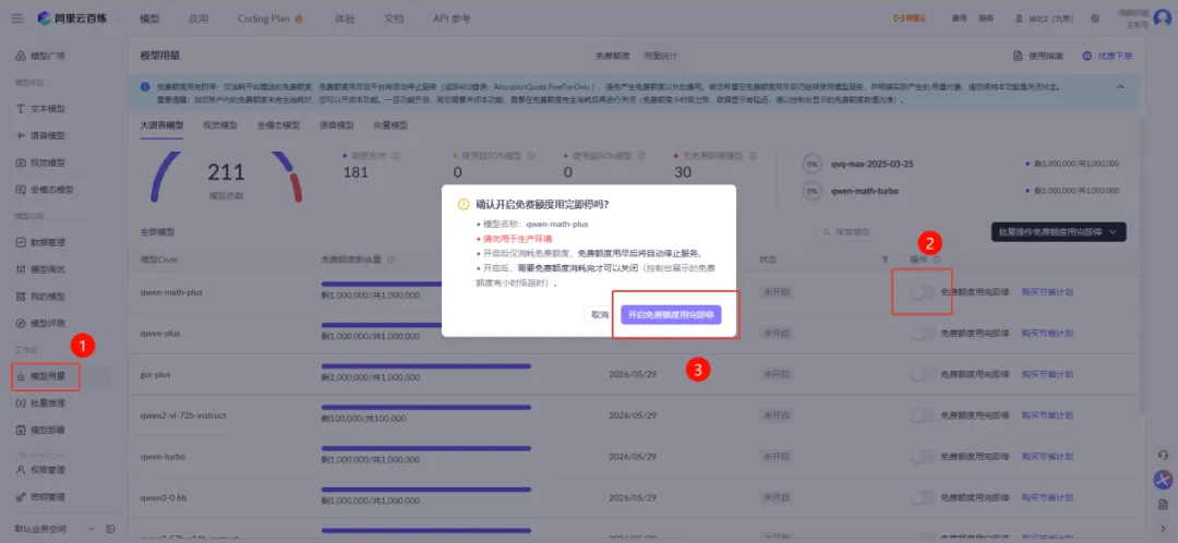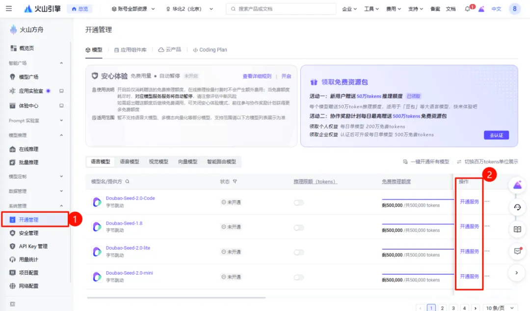 5、开通模型权限:千问与豆包的模型在调用前需开通相关权限。
