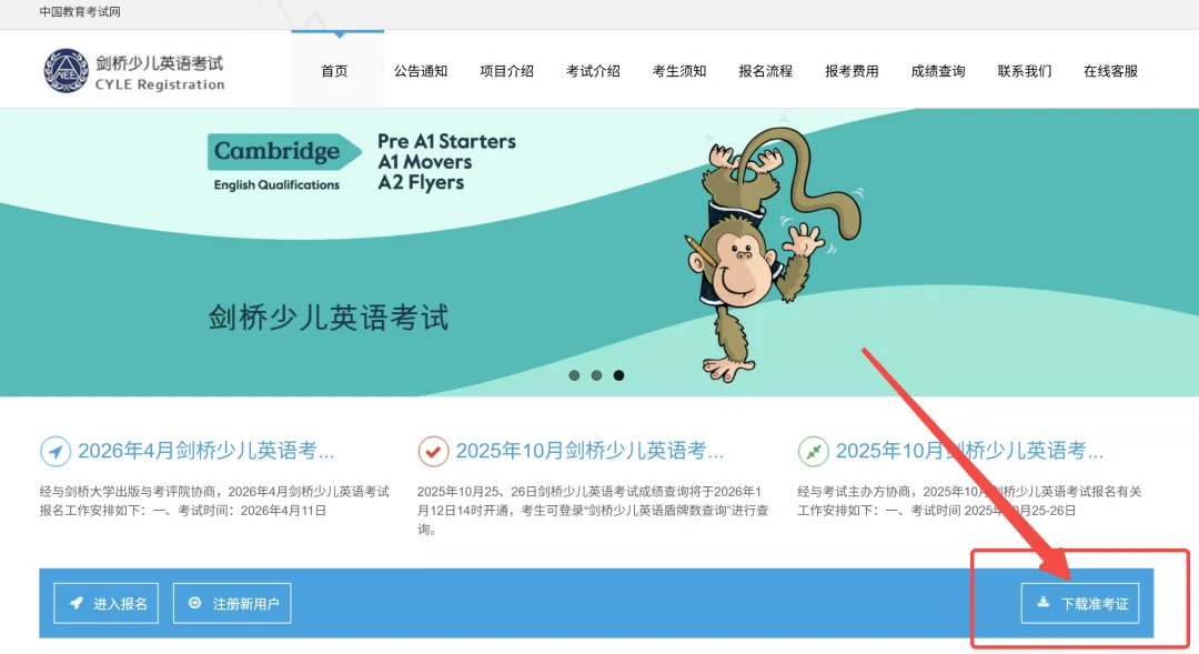 重要提醒!2026年4月剑桥少儿英语考试准考证