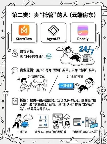 2、卖“托管”:云端房东 (StartClaw, Agent37)