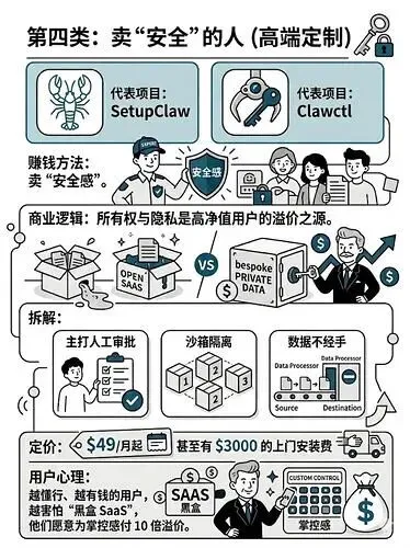 4、卖“安全”:私有部署 (SetupClaw, Clawctl)