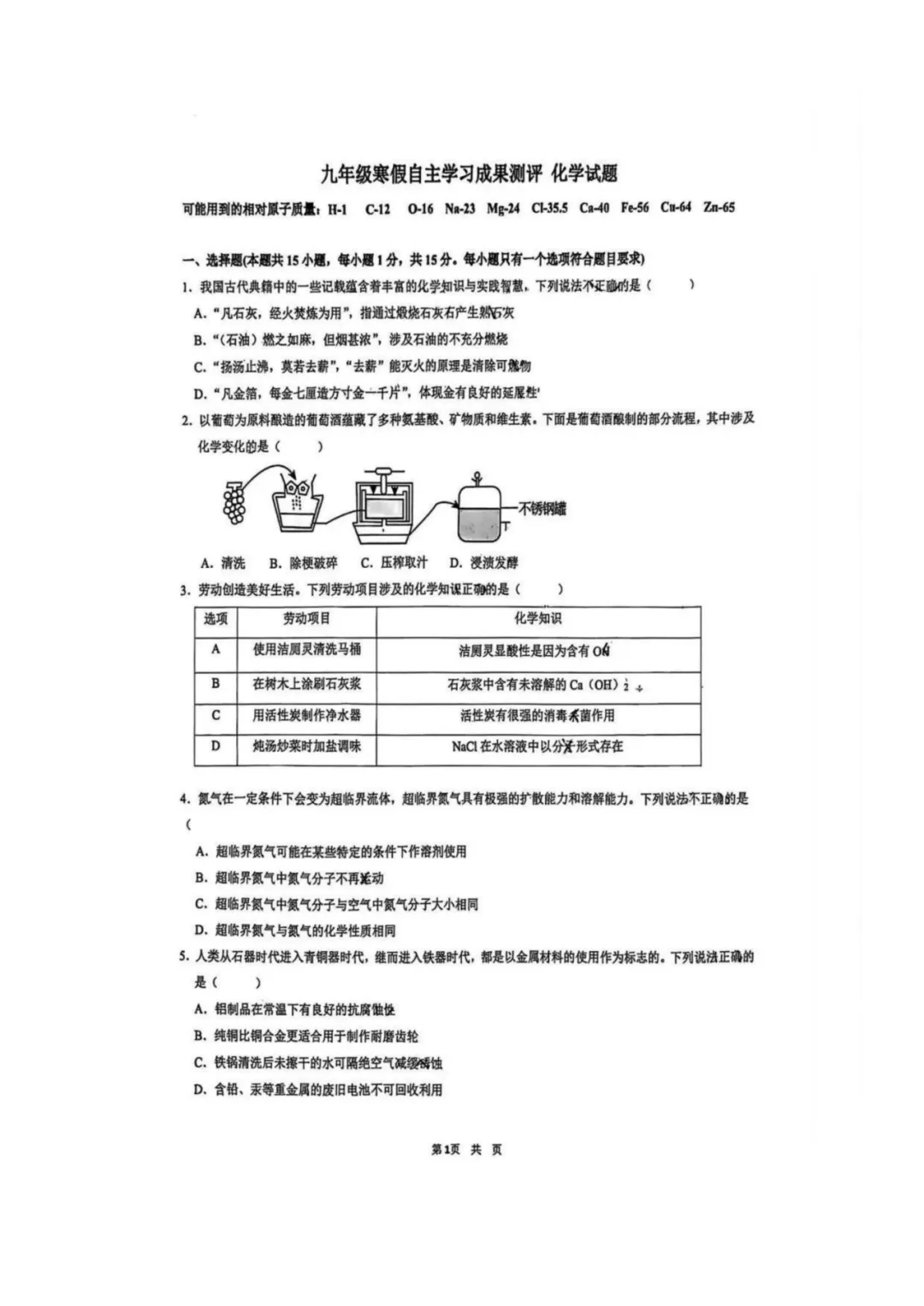 2026年61/63中自招模拟真题