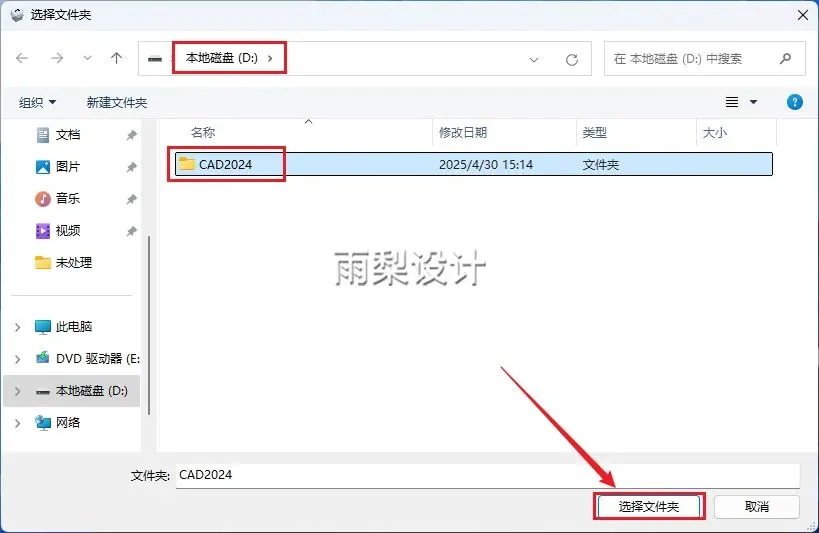 6.选择D盘,新建一个文件夹(名称不能是中文);点击【选择文件夹】