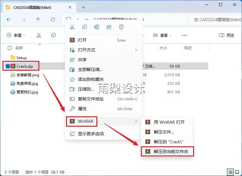 10.返回安装包;右键【Crack】选择【解压到当前文件夹】
