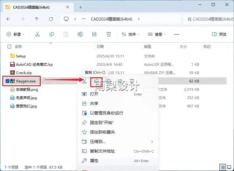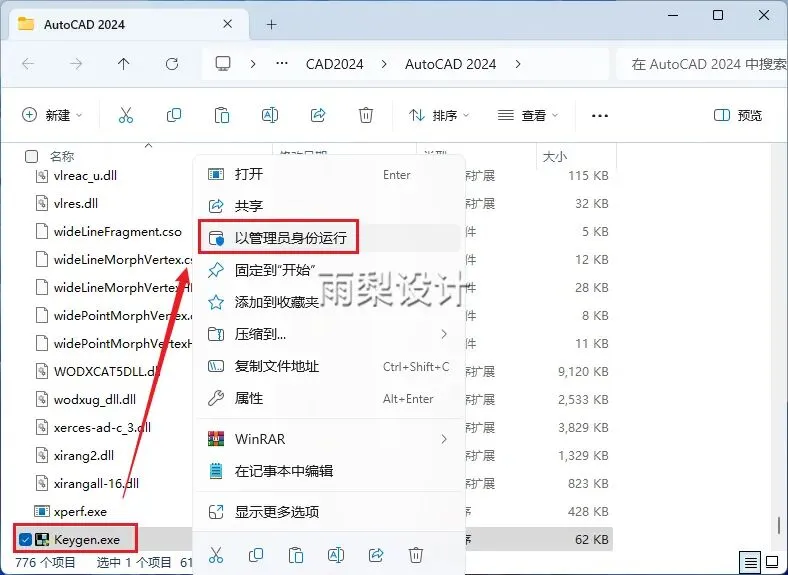 14.右键【Keygen.exe】选择【以管理员身份运行】