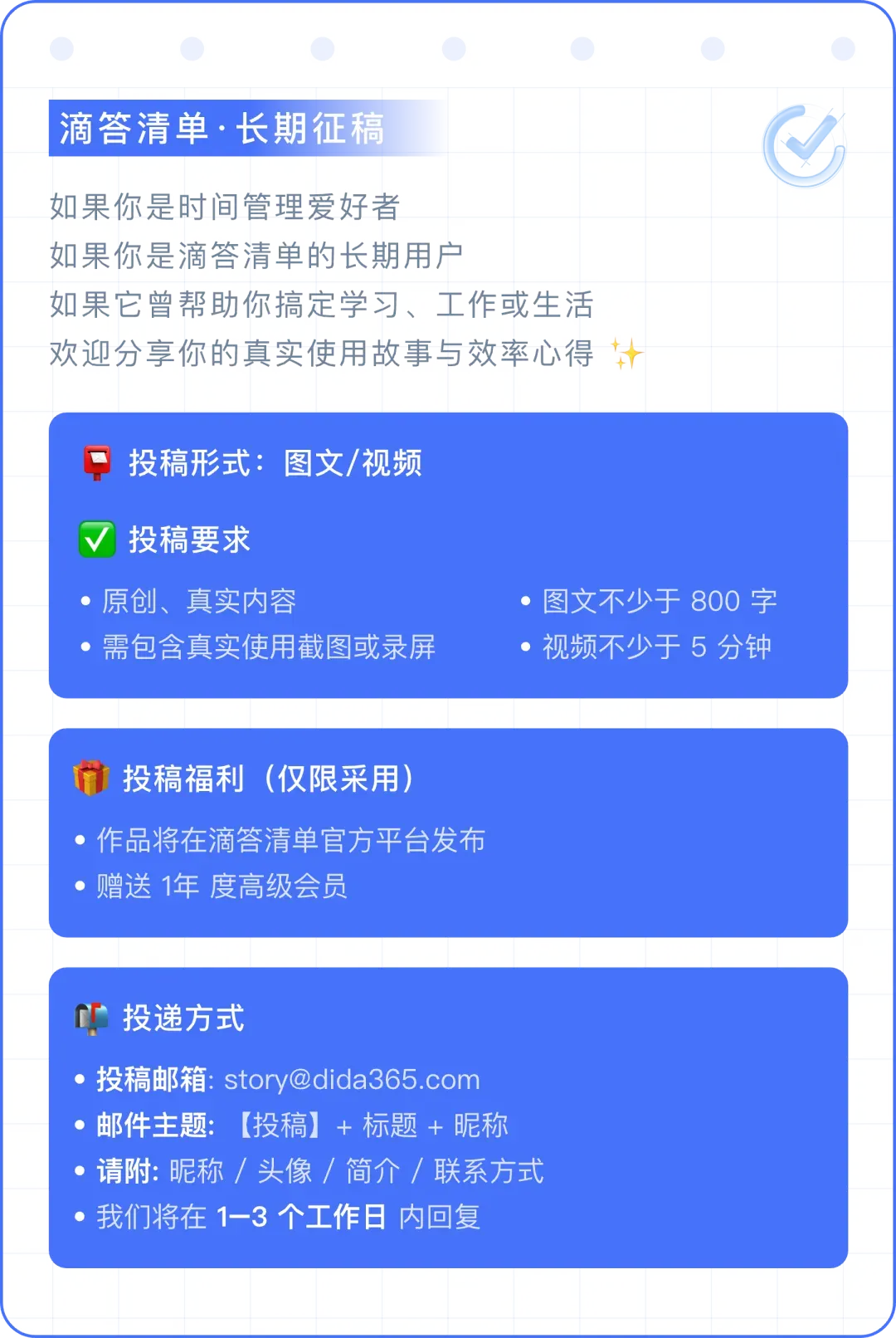 很多人喜欢把时间、标点都放在标题里,其实这样会让清单看起来很混乱,规范的写法应该是: