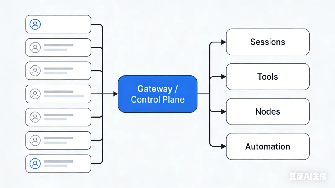因为 OpenClaw 的核心,不是“某个平台上的一个机器人”,而是 Gateway 这层控制平面。