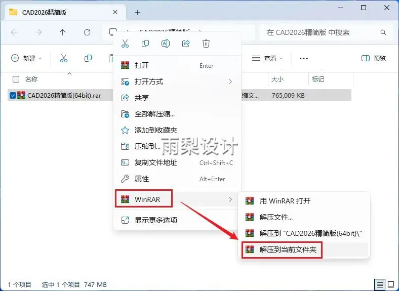 1.右键【下载的安装包】选择【解压当前文件夹】