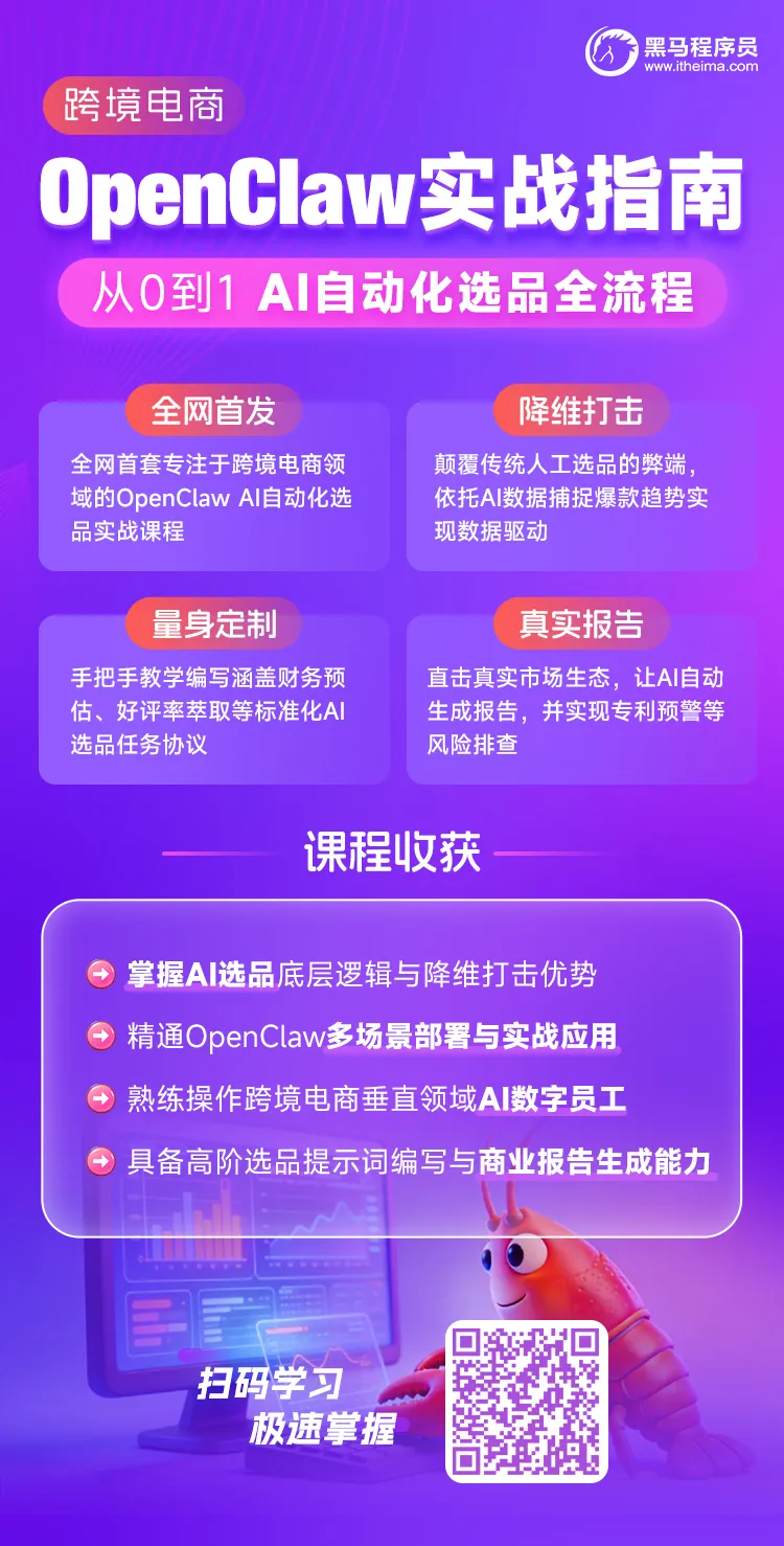 黑马新课——《2026年OpenClaw AI自动化选品全流程实战指南》正式上线!