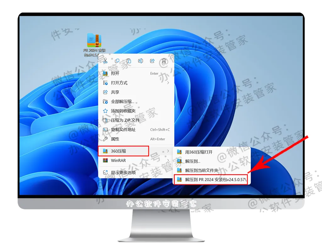 1.找到并选择已下载好的 【PR 2024v24.5安装包】 压缩包并进行解压