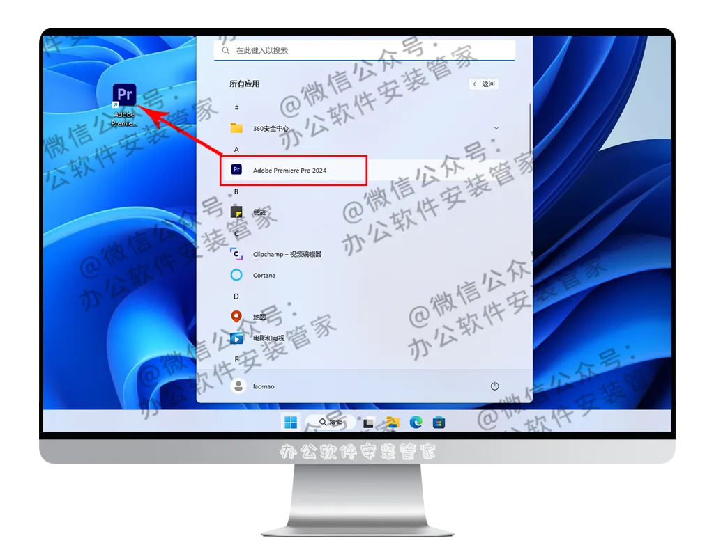 11.找到PR2024后左键单击选择,拖拽至桌面生成快捷启动方式