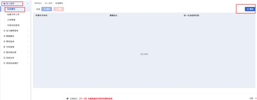 2. 进入缴费模块首页找到:专利缴费服务 → 网上缴费。