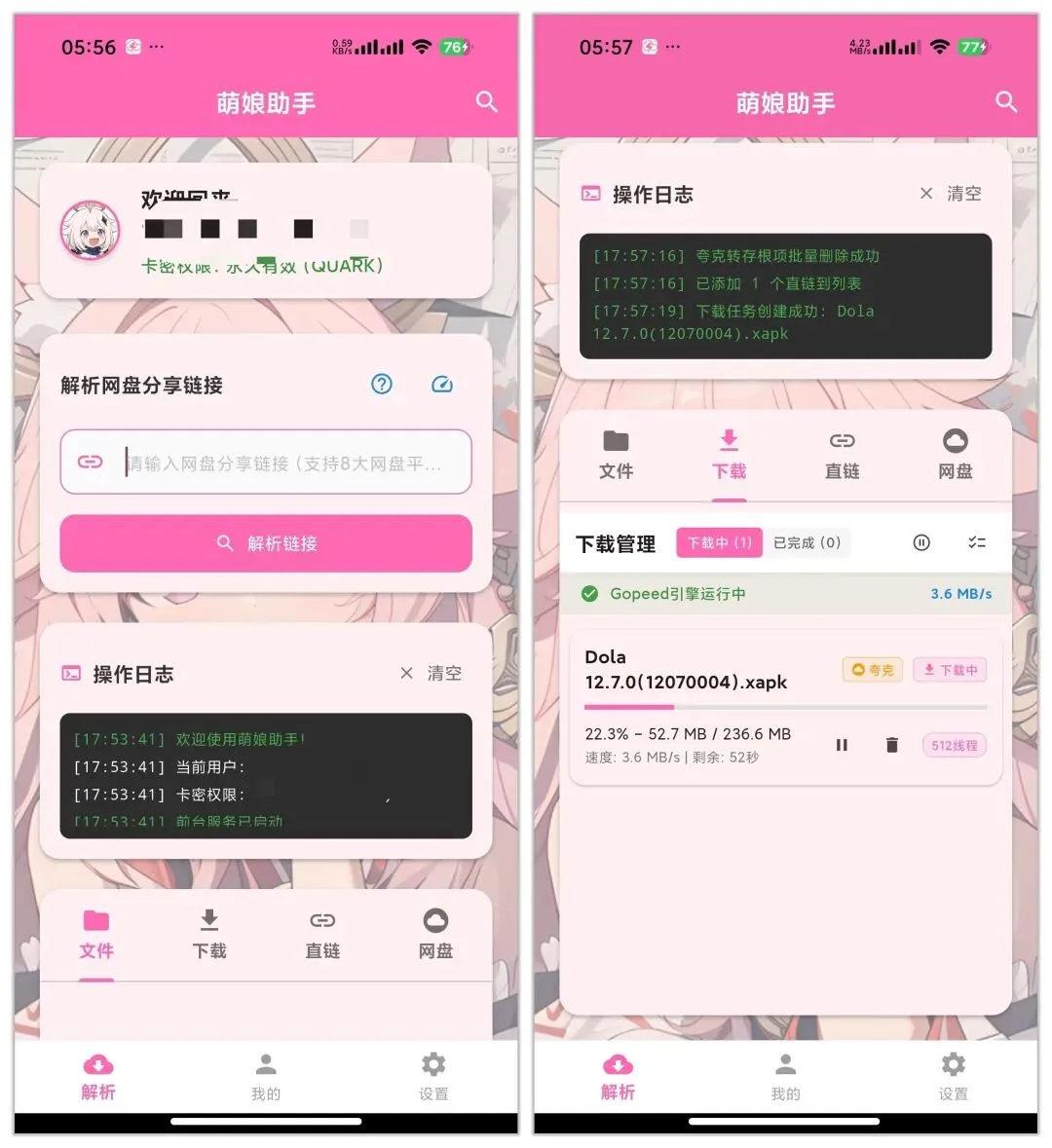3. 然后就可以复制粘贴链接过来解析下载了,速度确实比原来几百KB快多了