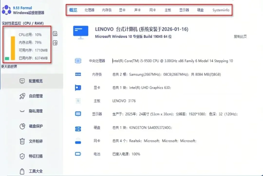 深度体检:硬件配置、启动项、系统垃圾,一键扫描,连藏在角落的缓存都能挖出来。