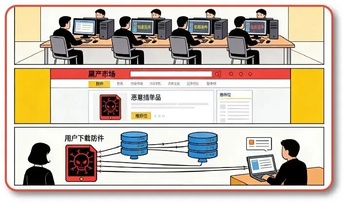 OpenClaw支持加载第三方插件的特性使其供应链存在巨大漏洞。黑产团伙利用用户对AI平台的信任,通过社会工程学诱导,将恶意插件伪装成刚需工具,避开传统杀毒软件与EDR检测,诱导用户主动植入窃密工具,实现精准攻击。