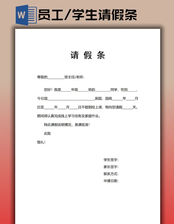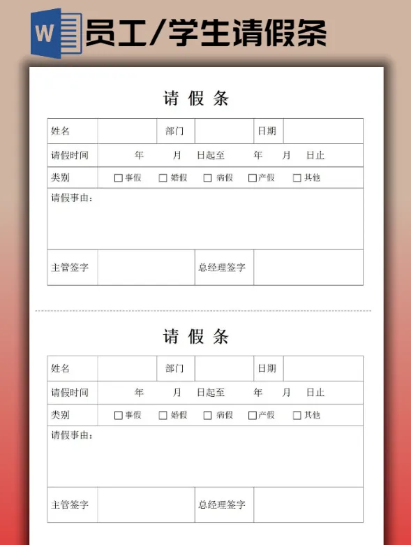 【2026】学生请假条/员工请假条模板(word电子版可打印可编辑)【免费保存下载】今天分享的是【2026】学生请假条/员工请假条模板合集下载后办公软件可直接编辑修改打印网盘打包下载链接👇https://pan.quark.cn/s/75fef7b5043a#请假条正规格式模板 #电子版的请假条模板以下为部分模板展示以上仅为部分预览图完整电子版可编辑手机点击阅读原文直接保存简历模板点击左下方“阅读原文”,进入下载页面