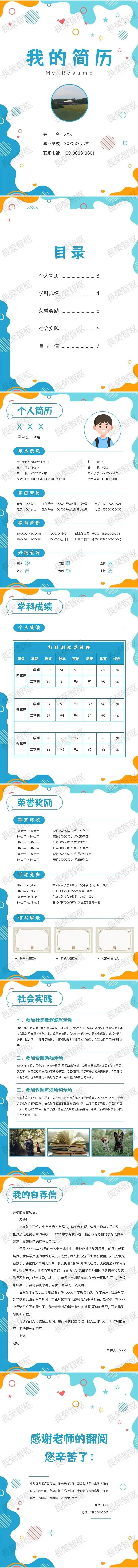 模板排版工整,避开花哨设计,重点突出核心信息,符合初中招生老师的阅读习惯,既能展现孩子的实力,又不显得繁琐。