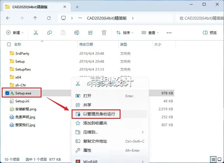 2.右键【Setup.exe】选择【以管理员身份运行】