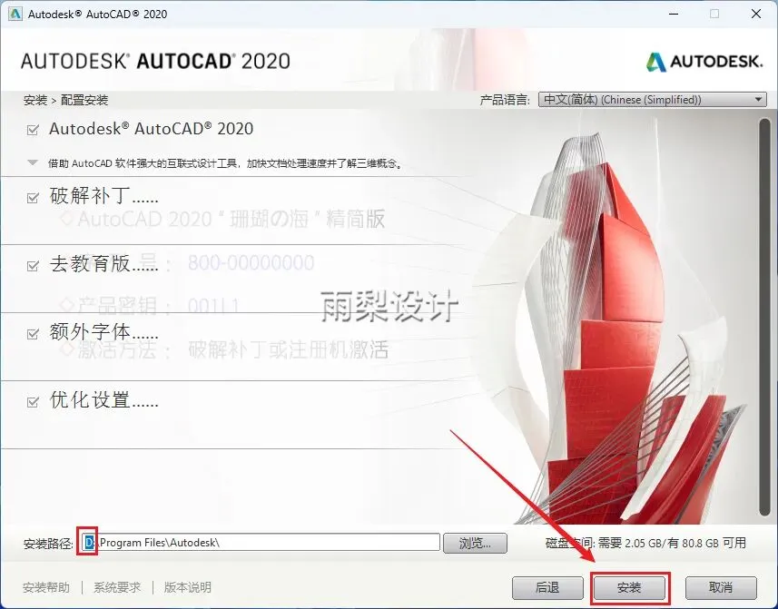 4.安装路径前面的C改成D;点击【安装】