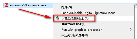 12.选中amtemu.v0.9.2,鼠标右键点击以“管理员身份运行”