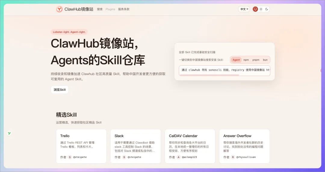 官方镜像站地址:https://cn.clawhub-mirror.com/