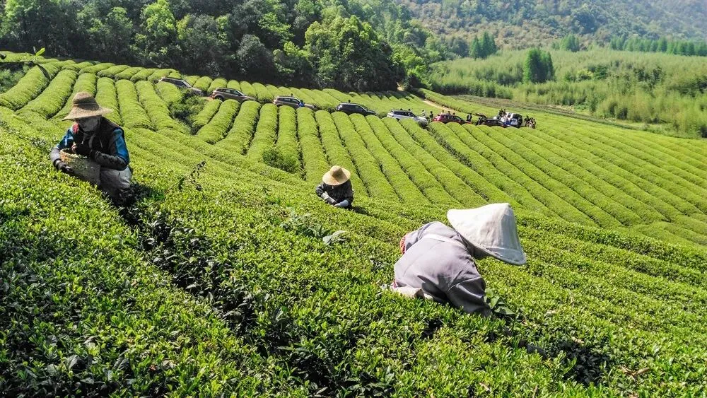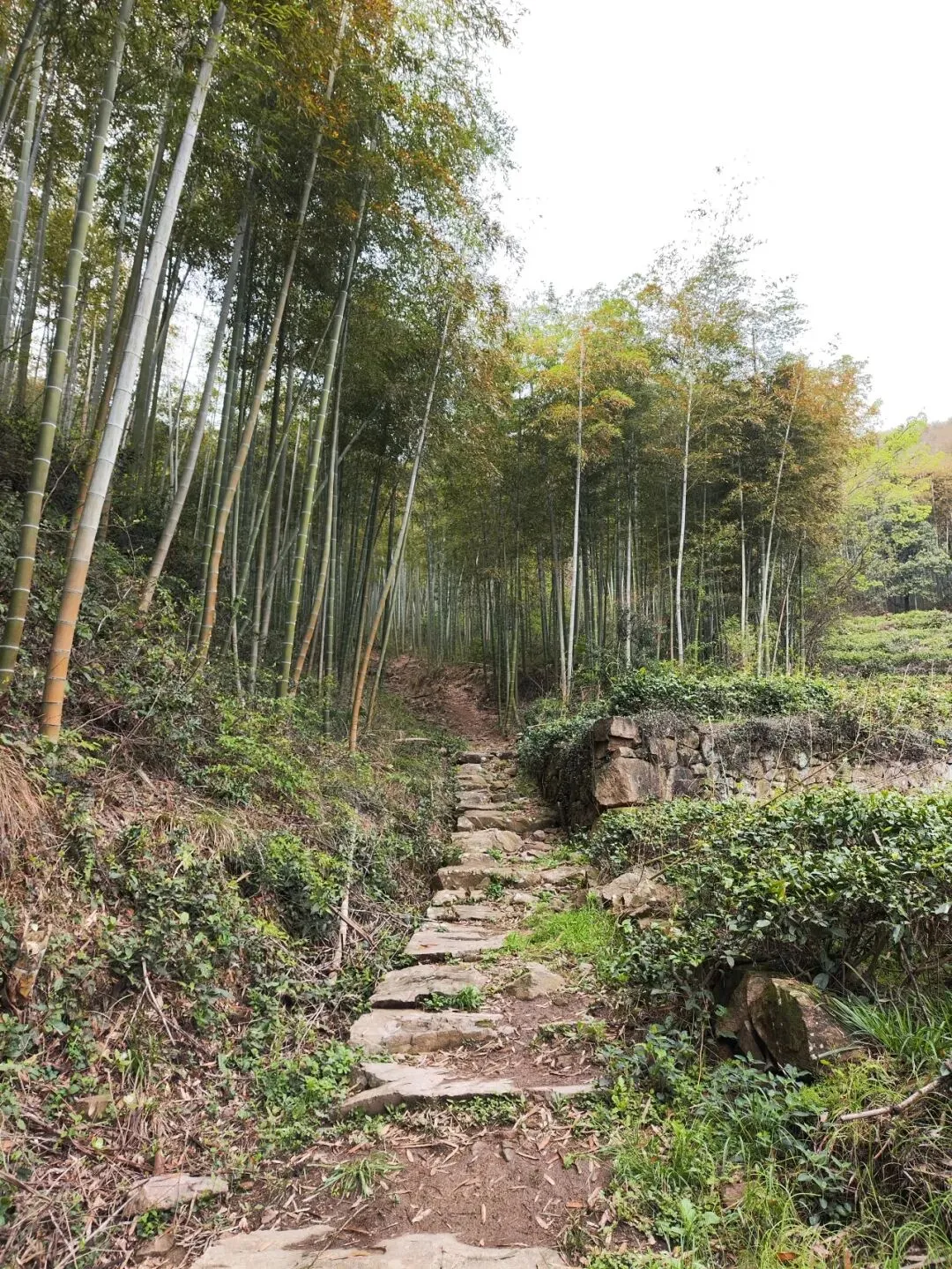 从CP3出发,先沿着竹林石阶缓缓上山,然后遇见广袤的台地茶园——采茶农人穿梭在茶园间,指尖轻捻嫩芽,茶香漫溢山间,此刻可别忘了注意表情管理,说不定有摄影师藏在竹影茶香中。“春山半是茶,竹影映清嘉”,这一段,值得你放慢脚步,好好珍藏。