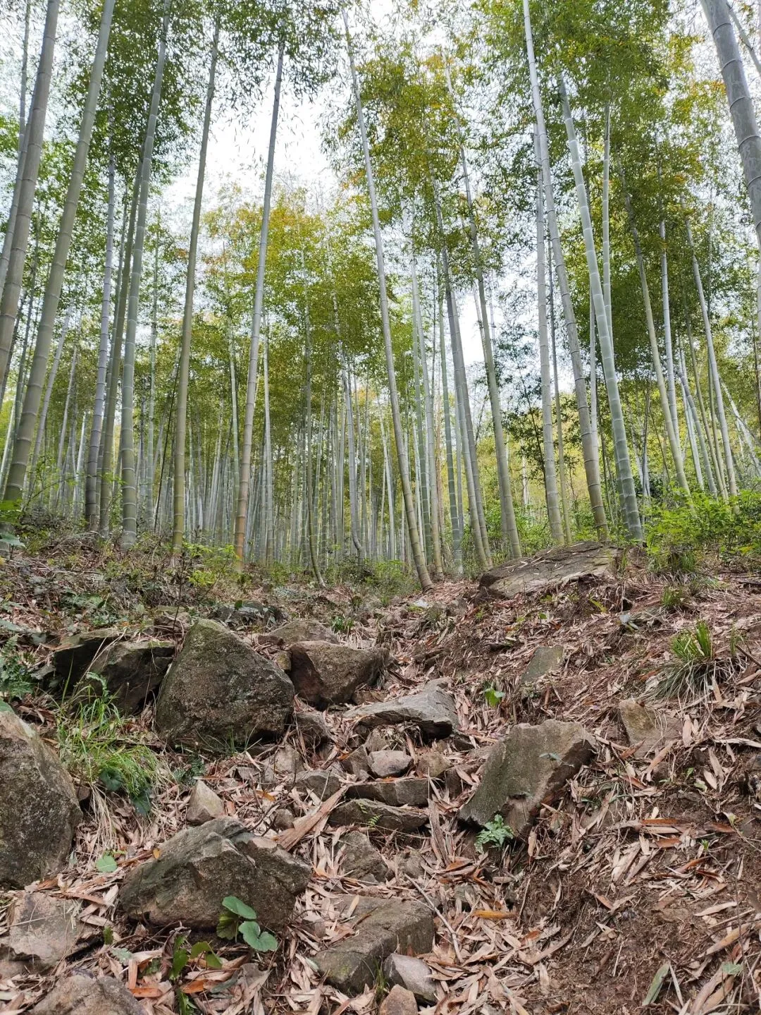 6公里后,再次进山,这段1.5公里左右的路程,是舒适的竹林碎石路和土路,只管迎着春风、伴着竹影,尽情享受山间奔跑的自在与畅快。